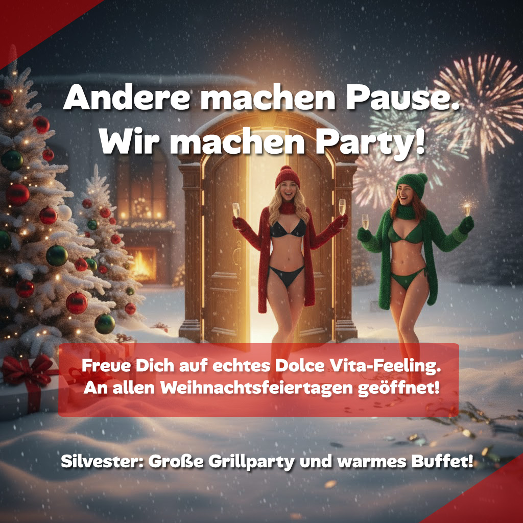 Club Dolce Vita Hirschberger Weg 4, WagenfeldNach der Bescherung ist vor dem Vergnügen! Wir laden dich am 1. Weihnachtsfeiertag zu einem besonderen kulinarischen und sinnlichen Erlebnis ein. Unsere Damen sorgen für die perfekte Mischung aus festlicher […]